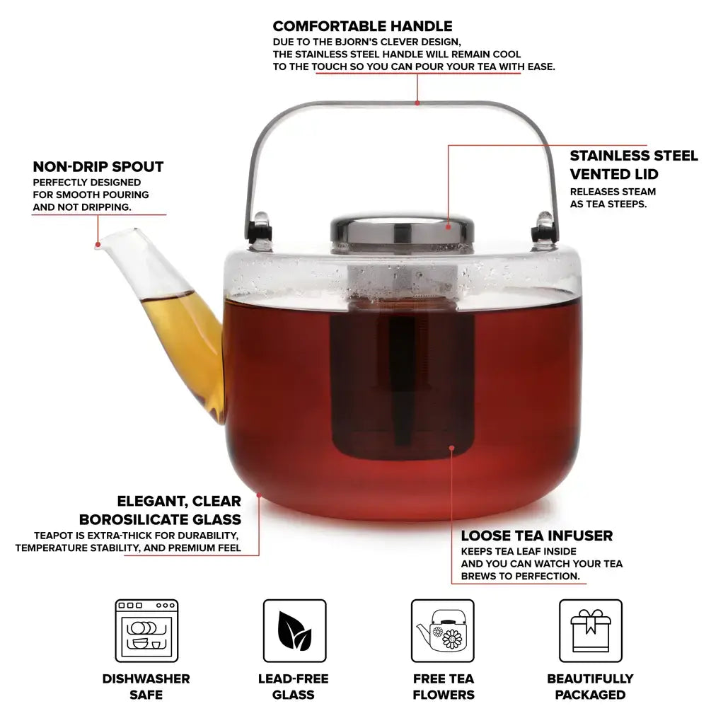 Bjorn™ Glass Teapot w/ Loose Leaf Tea Infuser - 22oz / 0.65L