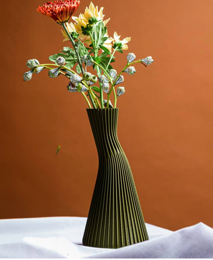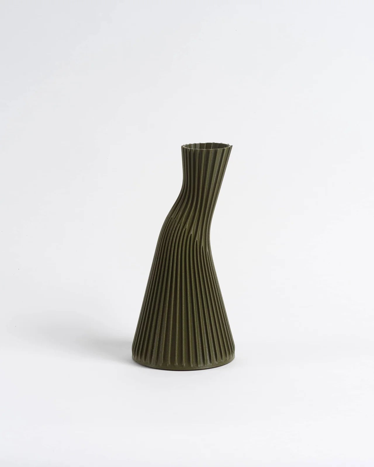 The Conan vase is the origin of the Idio collection. This little artwork is composed of two cones, one inverted over the other. Vertical ribs bifurcate at a smooth blending transition between the cones, and the result feels organic and utterly unique.
