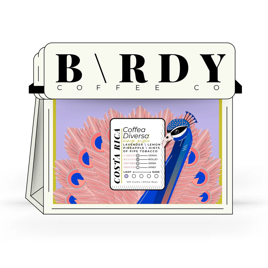 Our Costa Rican Geisha Winey from Coffea Diversa is a truly exceptional coffee, scoring an impressive 93 points and showcasing the beauty of one of Ethiopia’s rarest wild varieties, perfected in Costa Rica’s most diverse coffee garden. Winey-processed, it reveals a soft and delicate profile with floral notes of flowering grass and lavender, balanced by cocoa, molasses, and subtle hints of pipe tobacco.