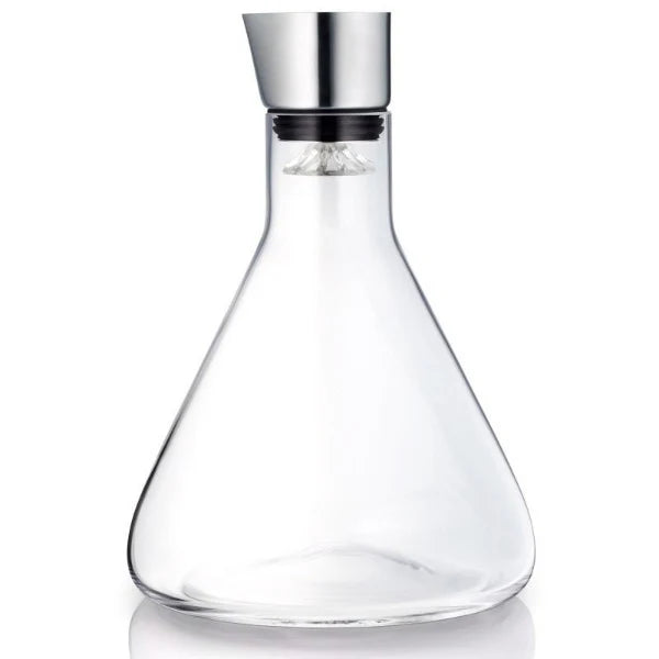 The DELTA Wine Decanter with Aerator offers a smart solution: the wine is being filtered and aerated while being poured into the carafe through the lid. It's minimalist figure is of timeless beauty yet eminently practical at the same time. The unique shape of the closure means that when the wine is decanted, it runs down across the inner entire glass surface, thereby maximizing aeration. The decanter top remains in place during serving.