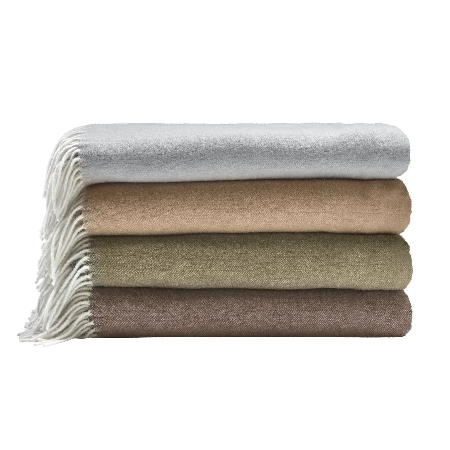 Discover the FINHO Merino Wool Throw, a luxurious home accessory that combines comfort and style. Throw is made of 100% mulesing free Merino Wool in Eastern Europe. FINHO features an elegant herringbone pattern with a harmonious two-tone color, accented with delicate fringing.