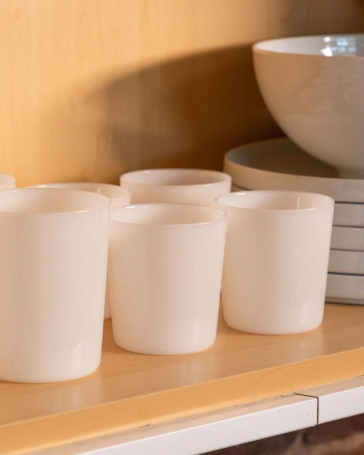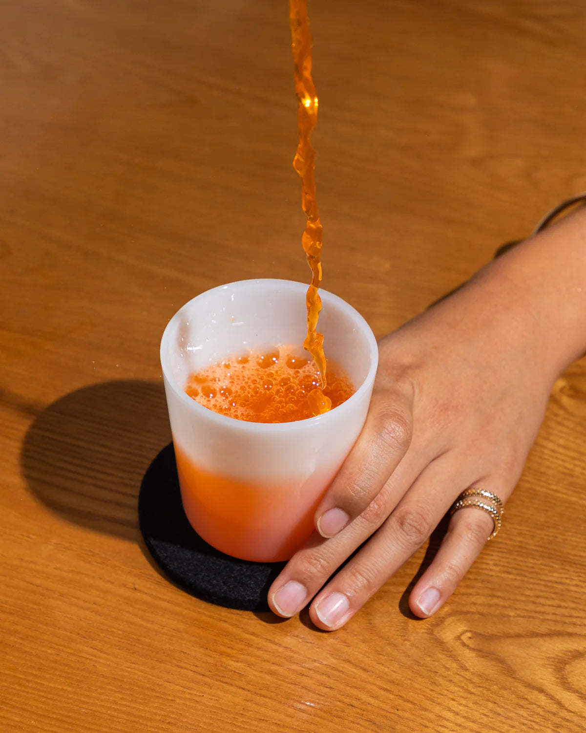 We wanted drinkware that could do it all - coffee to cocktails. It had to be strong, light, durable, and come in great colors. Our Glas line is made from Borosilicate glass, a special glass technique that allows vessels to withstand extreme temperature fluctuations without fracturing. Its durability makes it the perfect choice for hot beverages (just add a sleeve).