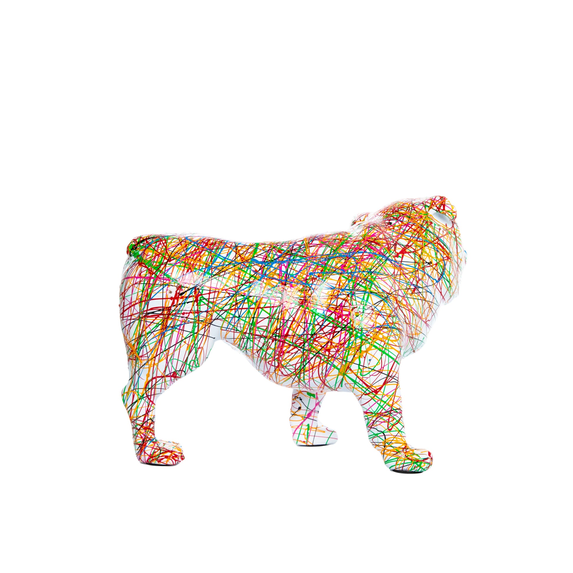 Hand Painted Expressionist Bull Dog with Leg Up - 10" long