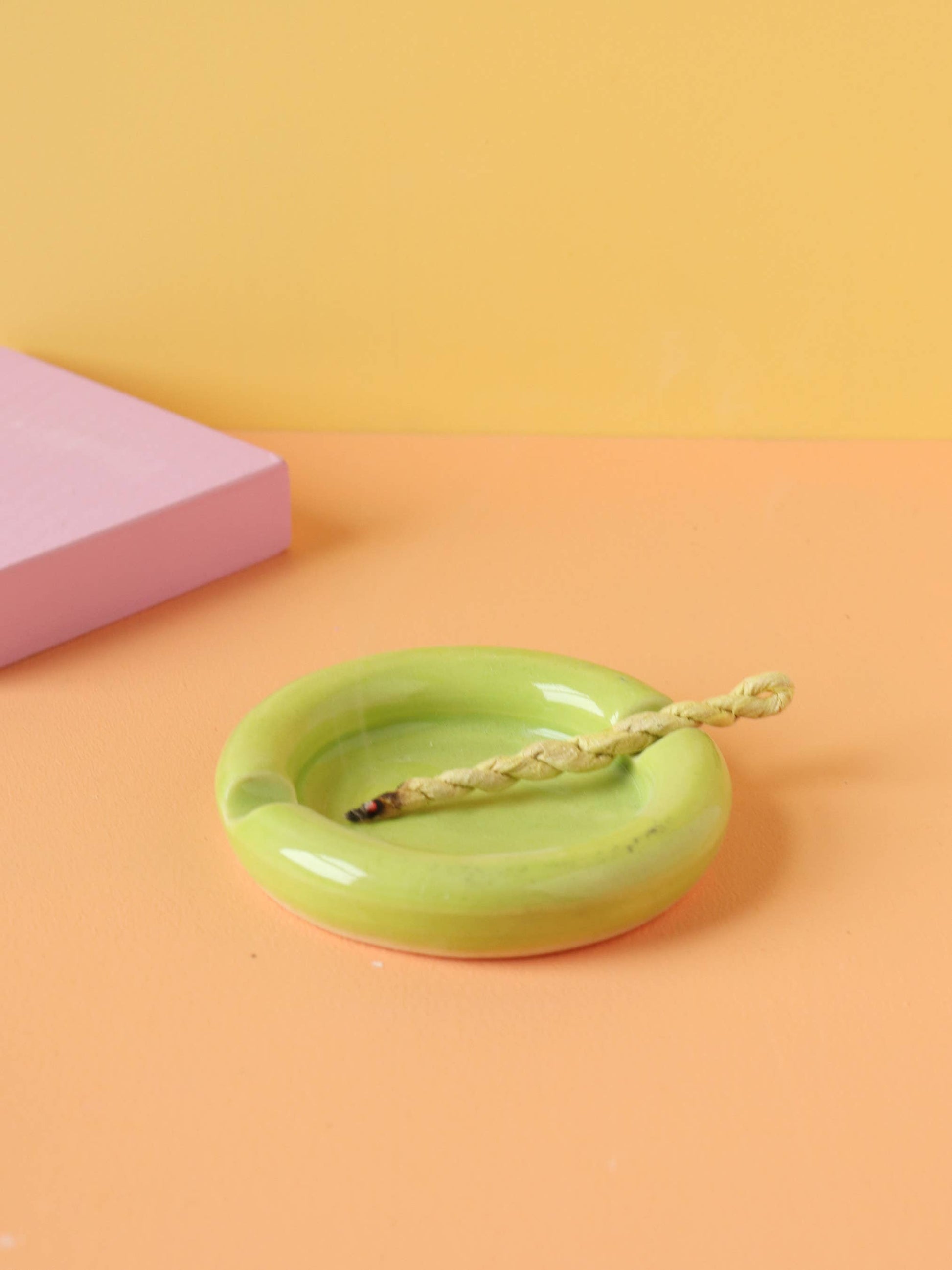 Cheerful ceramic ashtray available in bubblegum pink, lime green or splashy pastel. Also great as a jewelry dish or incense burner.