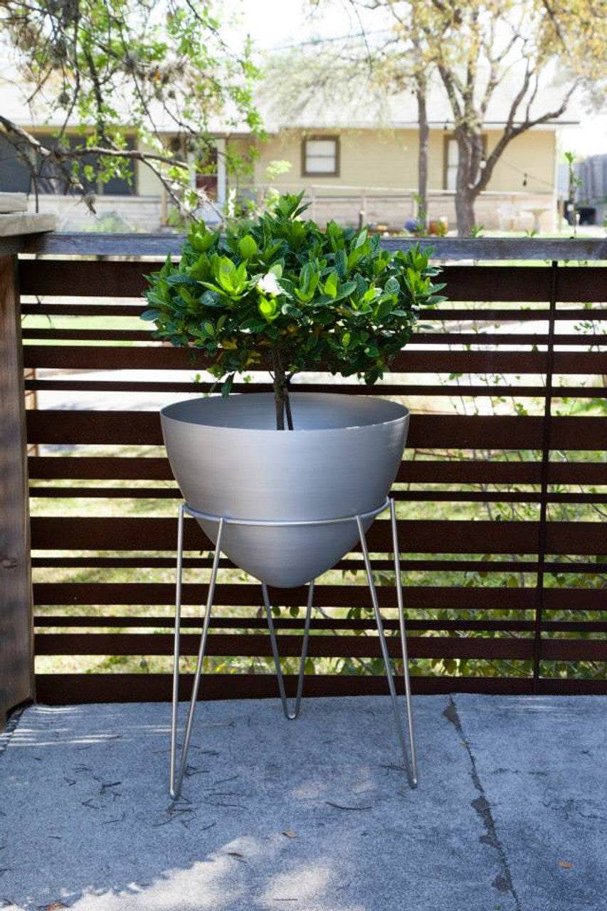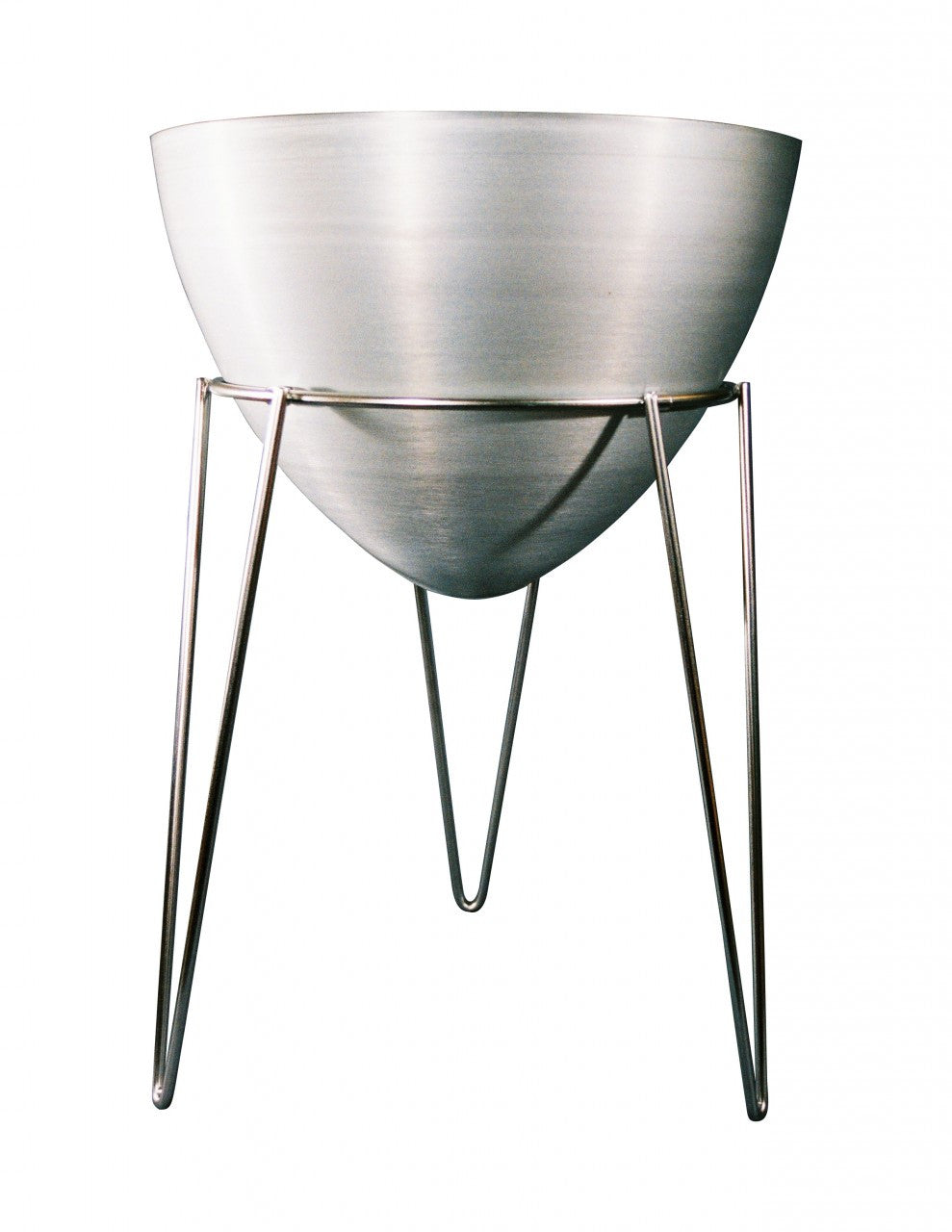 The Patio Pod by Hip Haven™ is our larger, all-weather version of the bullet planter. Available in a variety of powder coat colors with a stainless steel hairpin leg stand. Measures 18 inches in diameter and stands 28 inches tall. This item has a small drain hole.