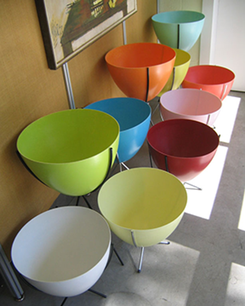 The Retro Bullet Planter® is a stylish addition to any space. Use it for plants, as an ice bucket, or to hold odds and ends. Our planter is an authentic reproduction of the vintage originals, in shape, size, and the distinctive texture of molded fiberglass. Bowls measure 15.75 inches across the top. Planters will tolerate covered outdoor conditions.