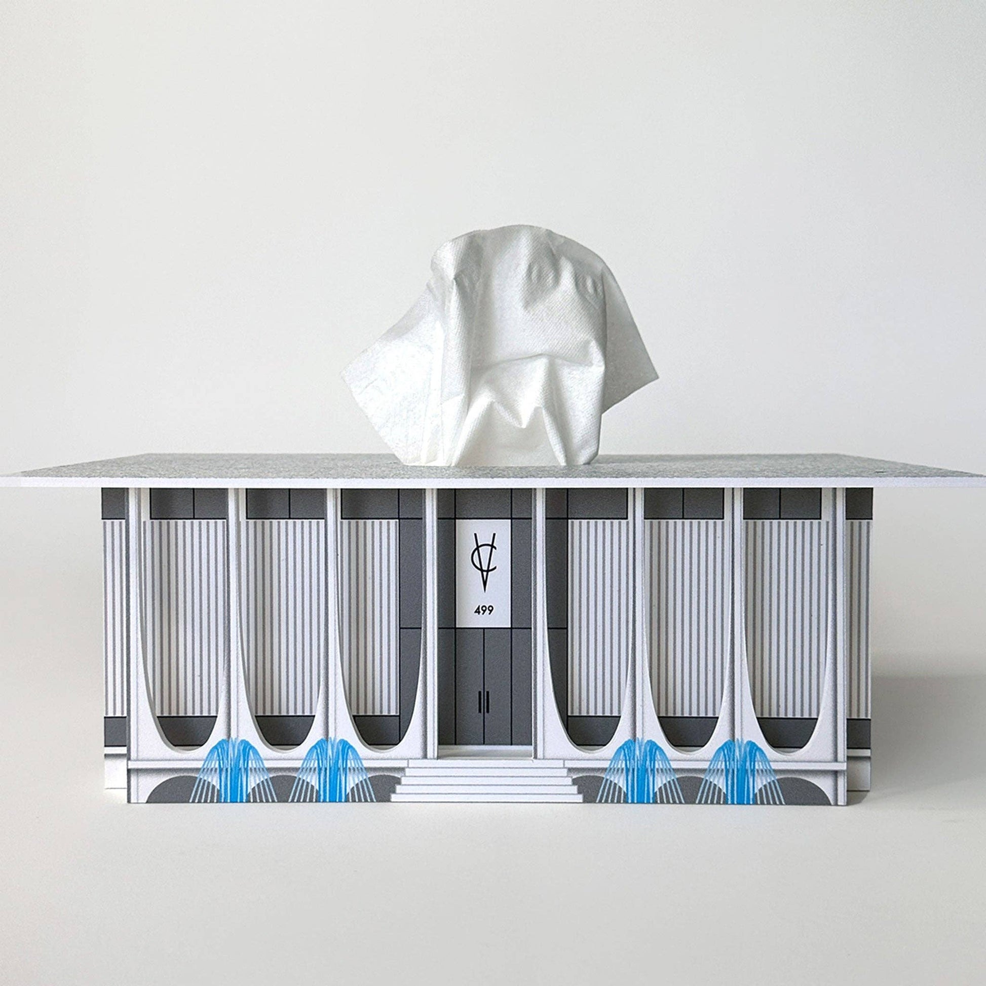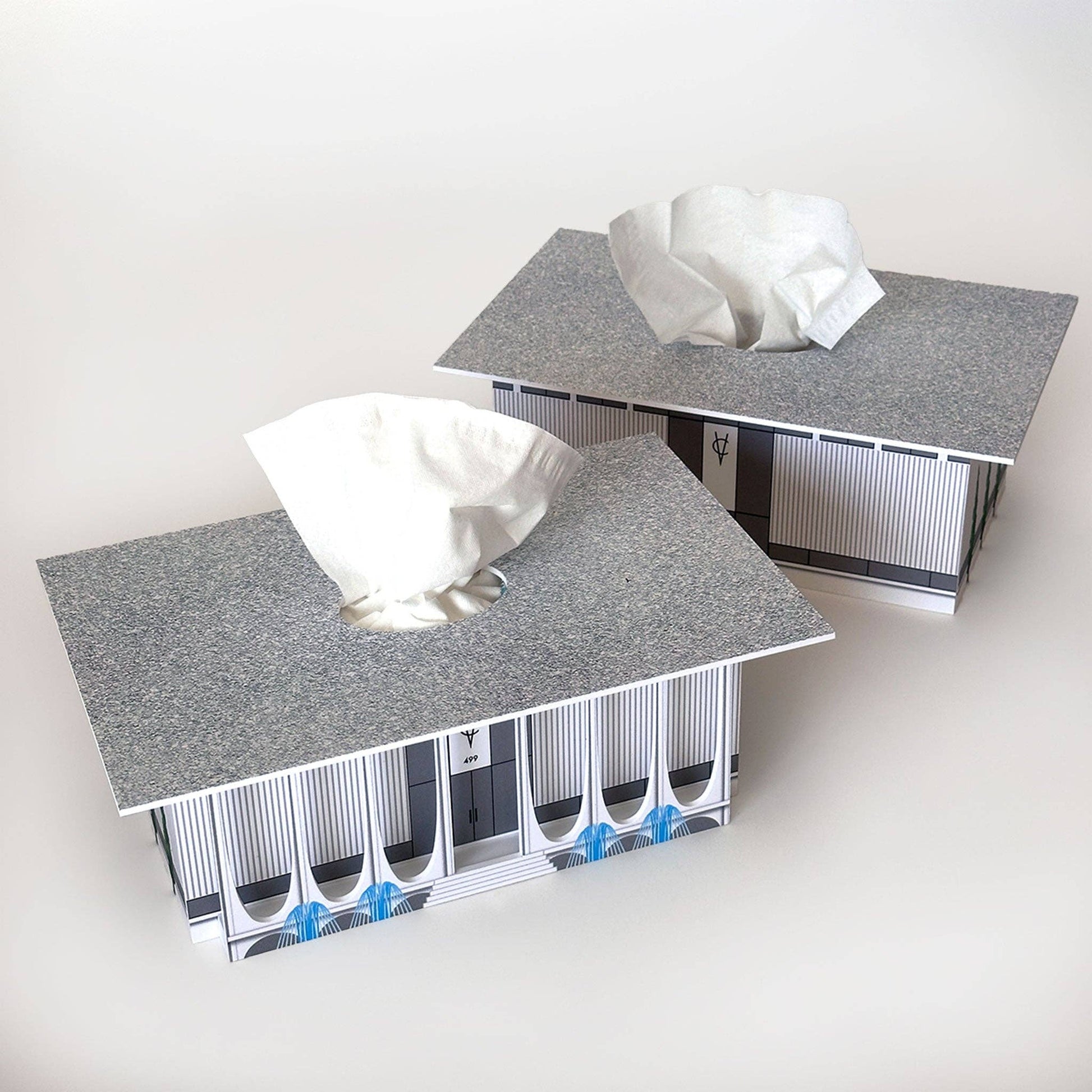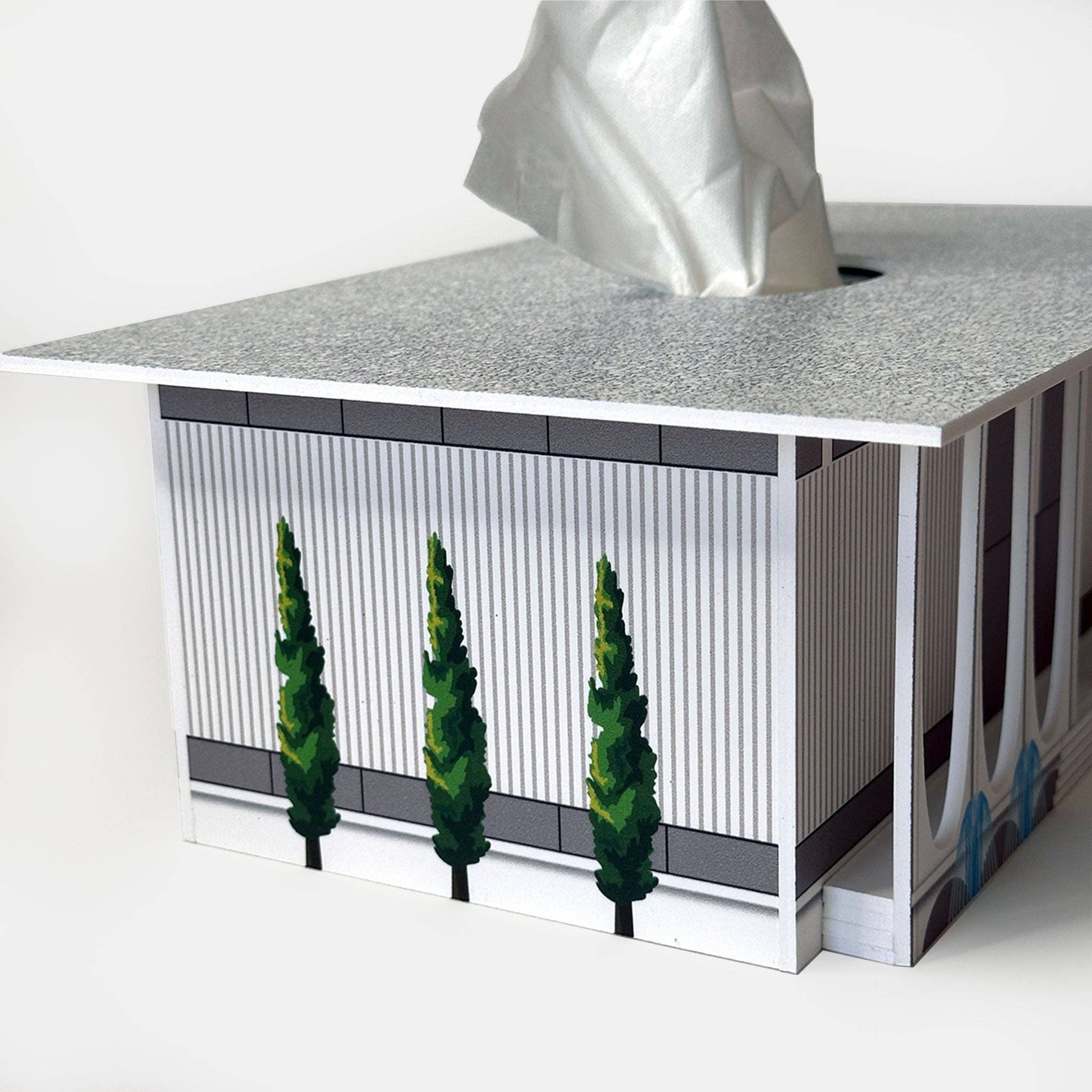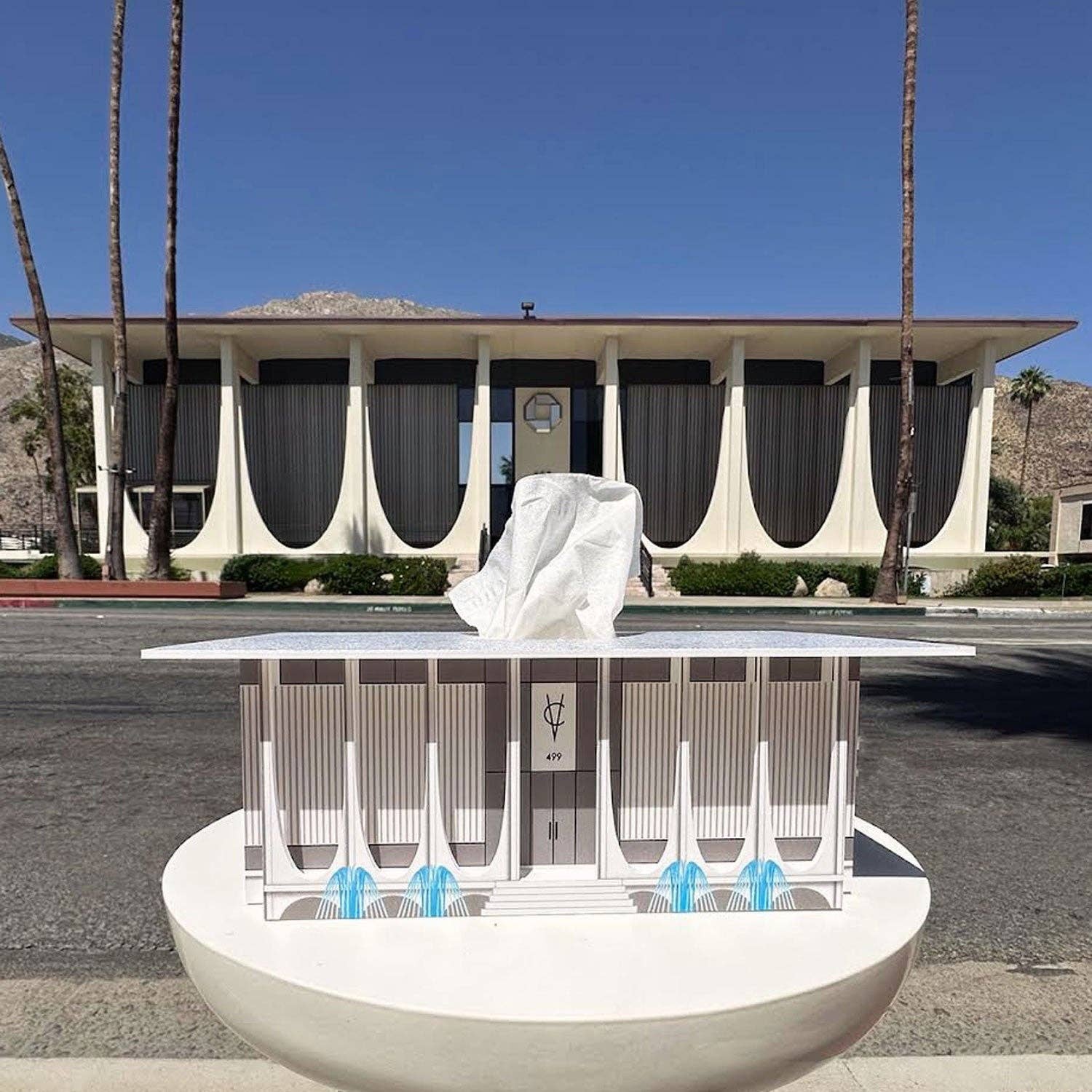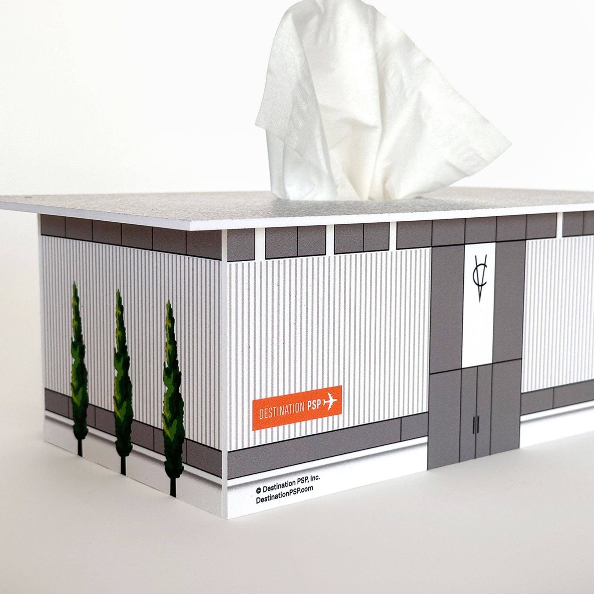 The historic Coachella Valley Savings & Loan #2 building (now Chase) is the latest in our series of tissue box covers inspired by iconic Palm Springs midcentury architecture.