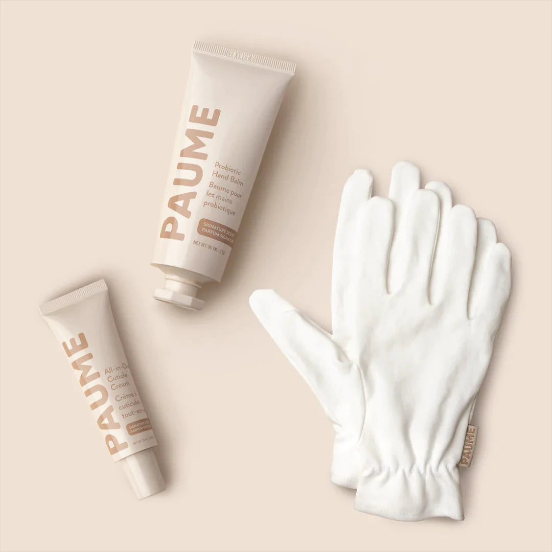 Ths ultimate hand hydration system includes the Probiotic Hand Balmd for daily non-greasy moisture that improves skin tone and elasticity, paired with the All-in-One Cuticle & Nail Cream, which softens cuticles and strengthens and repairs your nails. For maximum results, pair with the Overnight Gloves that lock in moisture while you sleep.