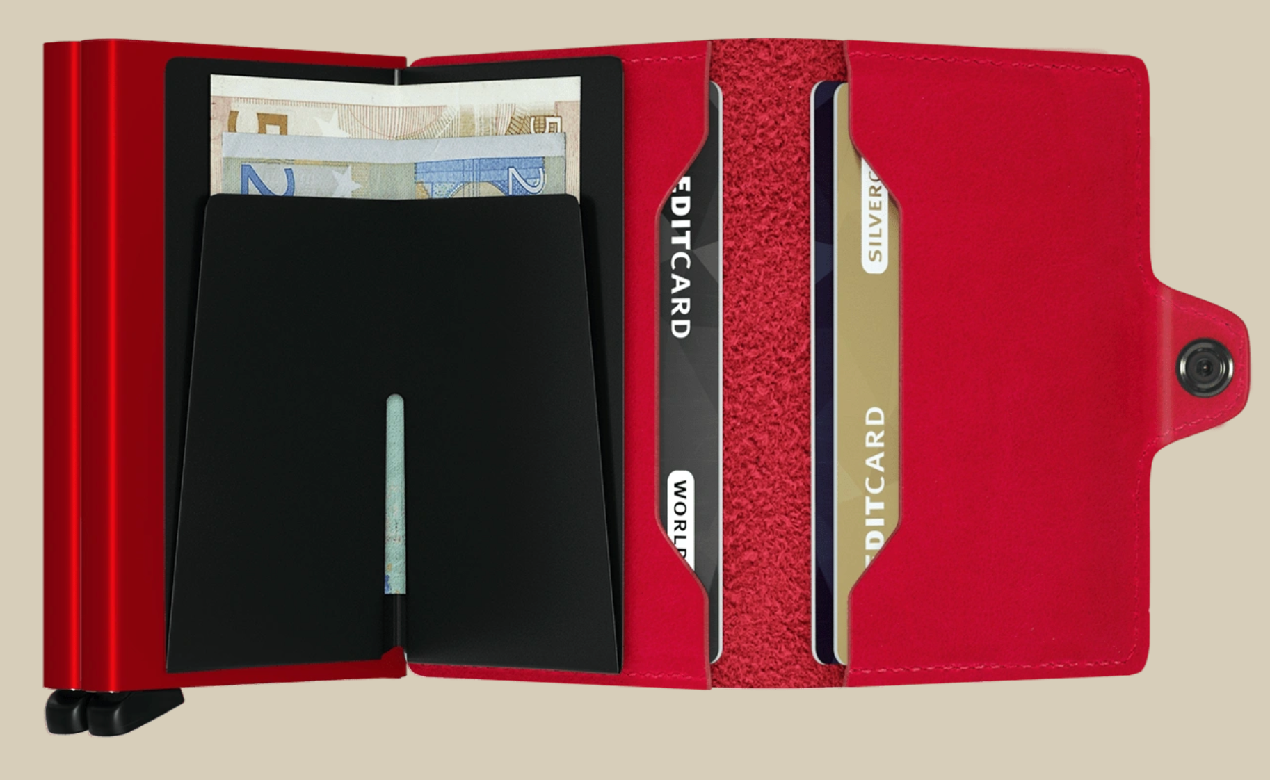 With two Cardprotectors to hold double the content, the Twinwallet carries up to 16 cards, banknotes and receipts, but remains compact in size. Together with its sturdy closure and exterior, to hold extra cards, banknotes and receipts, the Twinwallet holds much but remains compact in size.