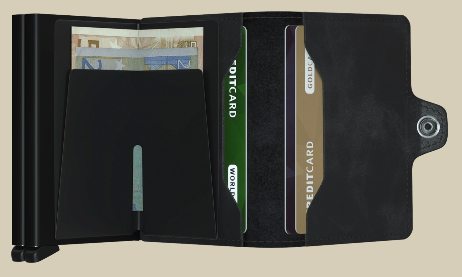 With two Cardprotectors, the Twinwallet stores twice as much while allowing you to access specific cards quickly