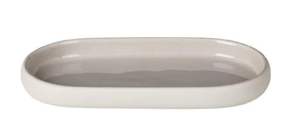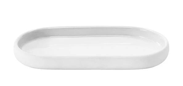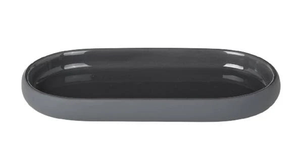 Oval Tray - SONO is just one available design in the blomus SONO bath line which features gentle shapes and perfectly rounded edges. The SONO range includes a soap dispenser, soap dish, tumbler, tray, storage box, vanity mirror, pedal bin waste basket, squeegee and toilet brush in a variety of colors including: Micro Chip (grey), White, Black, Moonbeam (beige), Satellite (taupe), Magnet (charcoal), and Tan.