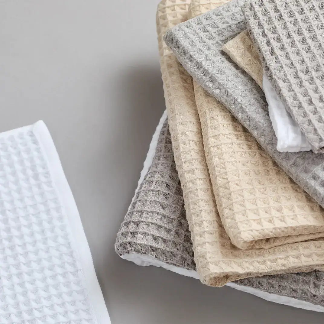 The Air Waffle offers you an exceptionally soft touch with a unique textured feel. The cotton yarn used to make Air Waffle contains air within the small crevices allowing the towels to be lightweight, breathable, and adept for quick drying. Since the waffle surface minimizes skin contact, the towel feels crisp even after absorbing moisture. Lightweight and compact, it's suitable to be used as travel towels or for space-conscious homes.