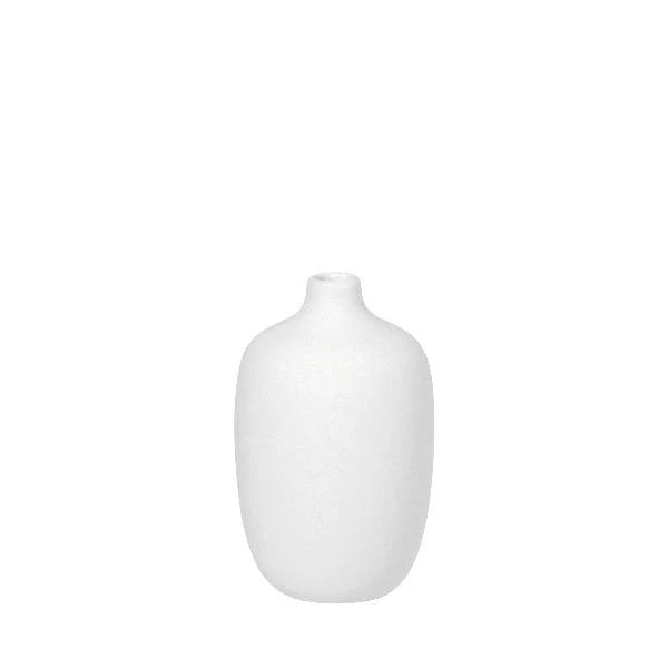 The surfaces of the CEOLA series are made of resistant ceramics, glazed but left a bit course. Small bumps, slight color variations and visible lines are the result of the production process and add to the natural look as well as the unique character of every single vase. Gather a few of your favorite flowers – or simply collect wild twigs that add a rustic, natural feel to your interior décor.